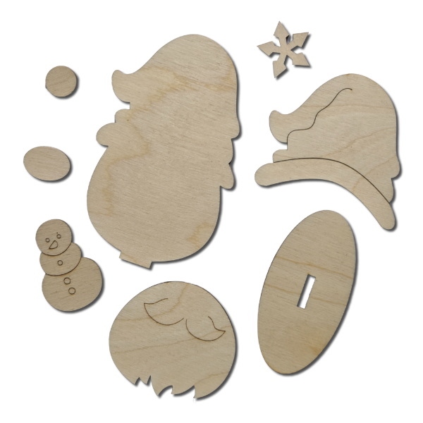 Lieferumfang: 9 Einzelteile (Kontur mit Ständer-Pin, Mütze, Krampe, Stern, Nase, Bommel, Bart, Schneemann und Fuß)