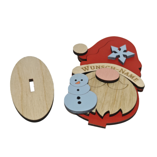 Weihnachtswichtel | Tischdekoration | Ständer (mit Gravur). Der Sockel wird nicht verleimt, da sowohl der Versand als auch die Einlagerung platzsparender sind.